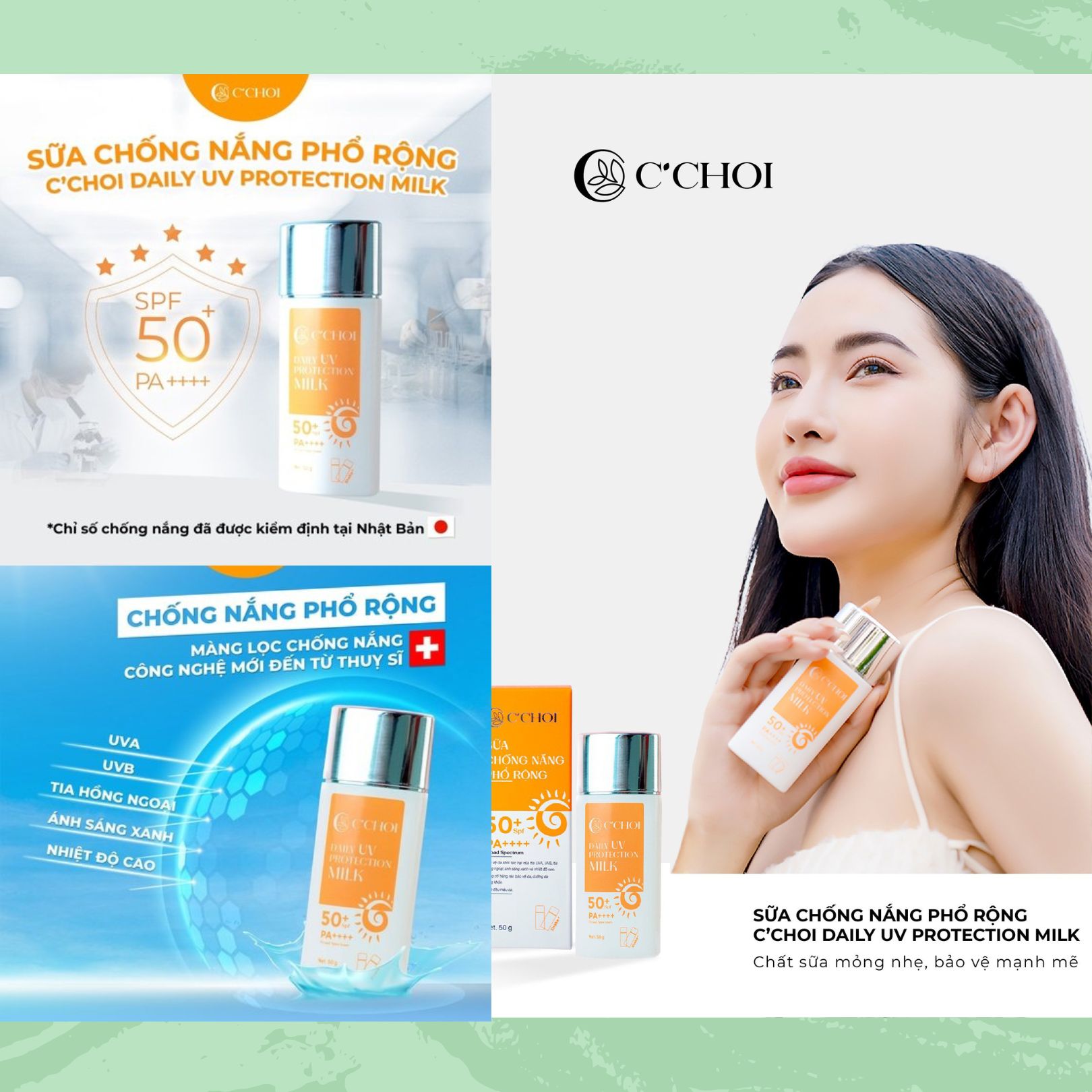 Sữa chống nắng phổ rộng C'Choi có chỉ số chống nắng cực đỉnh được kiểm định từ Nhật Bản sẽ giúp các nàng tránh khỏi các vấn đề da đó.