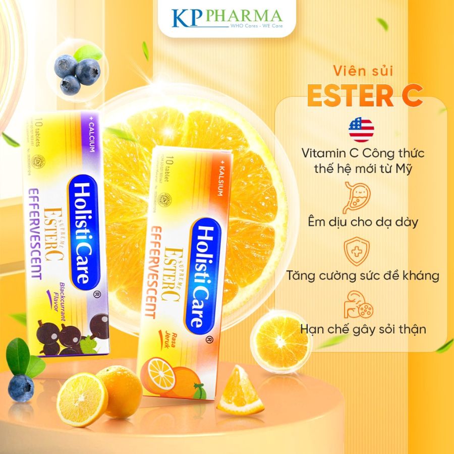 ✨ Ester C – một dạng của vitamin C kết hợp với Canxi, Vitamin C trở thành trung tính.