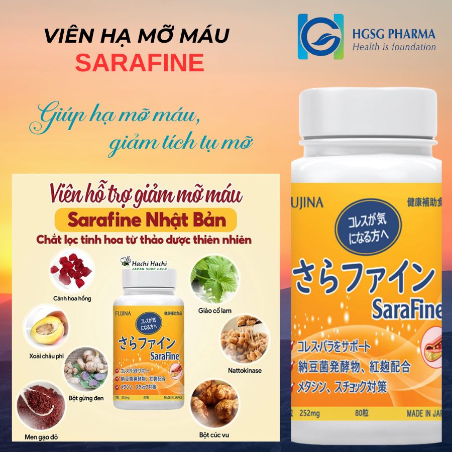 Viên hạ mỡ máu SARAFINE không chỉ giúp hạ mỡ máu mà còn làm sạch mạch máu, hỗ trợ tim mạch và ngăn ngừa nguy cơ đột quỵ. Được sản xuất theo tiêu chuẩn y tế cao nhất của Nhật Bản, SARAFINE là lựa chọn an toàn và hiệu quả cho sức khỏe của bạn. Hãy để lại số điện thoại để nhận ưu đãi và tư vấn ngay hôm nay!