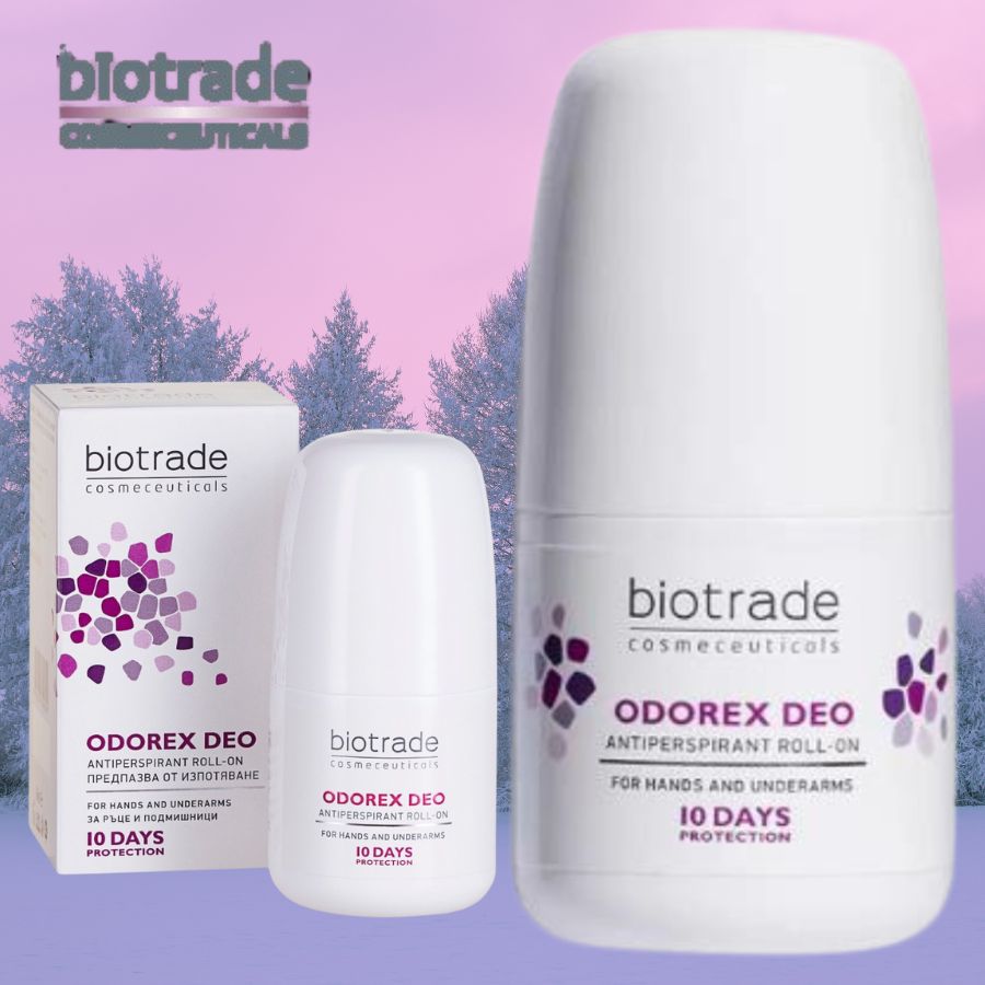 Lăn khử mùi BIOTRADE ODOREX DEO là sản phẩm chăm sóc vùng nách hiệu quả và an toàn. Sản phẩm có khả năng ngăn tiết mồ hôi, khử mùi, kháng khuẩn và bảo vệ da khỏi sự phát triển của vi khuẩn gây mùi khó chịu. Sản phẩm không làm gián đoạn quá trình điều nhiệt, không để lại vết bẩn trên quần áo và không gây kích ứng da. Sản phẩm có hiệu quả kéo dài lên đến 10 ngày chỉ với một lần thoa. Sản phẩm được sản xuất tại Bulgari, có dung tích 40ml và hạn sử dụng xem trên bao bì