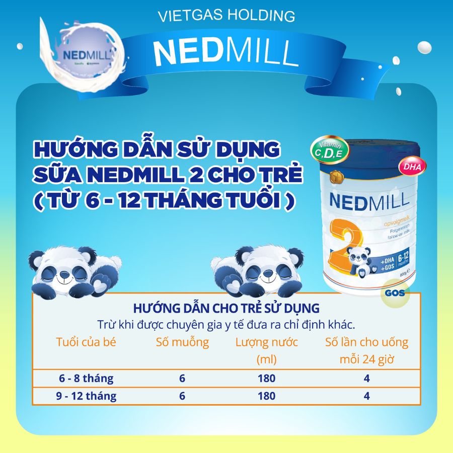Sản phẩm dinh dưỡng công thức NEDMILL Stage 2 dành cho trẻ từ 6 đến 12 tháng tuổi: