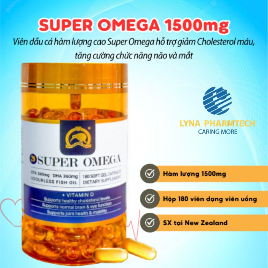 - Viên dầu cá hàm lượng cao Super Omega hỗ trợ giảm Cholesterol máu, tăng cường chức năng não và mắt