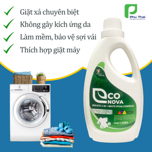 1. Tên sản phẩm: Nước giặt xả thảo mộc Econova - Bucato 2 in 1 White Ipoallegenico 1.65 kg