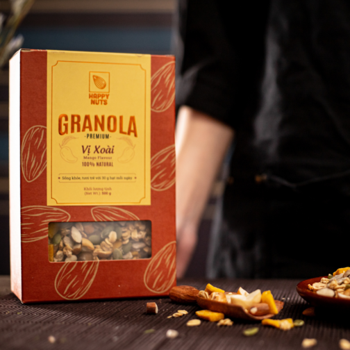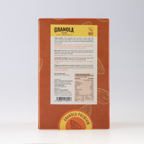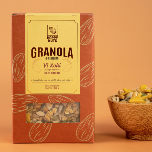 1. Tên sản phẩm: Premium Granola – Vị Nho HAPPY NUTS 500gr