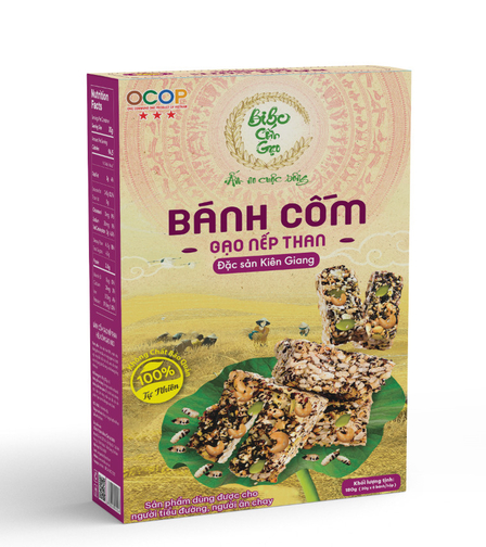 2. Thành phần: gạo nếp than 80%, mạch nha, đường phèn, hạt điều, hạt bí ngô, mè vàng nguyên vỏ, rong biển, dầu thực vật, nước cốt chanh, gừng tươi, muối hầm.