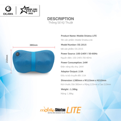 1. Tên sản phẩm: OGAWA Shiatsu Lite - Blue / Gối massage văn phòng (OG 2015)