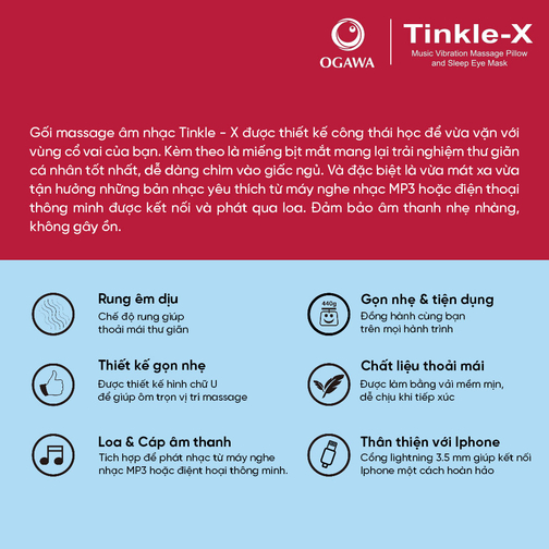 1. Tên sản phẩm: Tinkle Touch - X (OL-0502X) and sleep Eye Mask / Gối massage âm nhạc kèm miếng che mắt ngủ (OL-0502X)