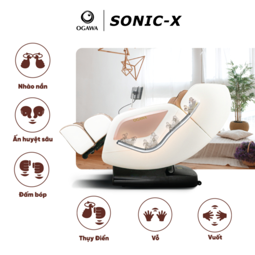 OGAWA Smart Sonic-X là ghế massage toàn thân mang thiết kế hoàn hảo, sang trọng với kiểu dáng và màu sắc độc đáo, phù hợp với mọi gia đình. Tích hợp cùng nhiều tiện ích giúp tăng cường thư giãn và hỗ trợ điều trị sức khỏe xương khớp.