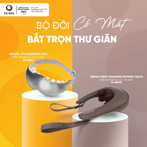 Bộ đôi cổ mắt – Bắt trọn thư giãn bao gồm máy massage cổ vai gáy đa năng Wonder Touch và máy massage mắt EM-X của OGAWA. Giúp bạn có những giây phút thư giãn cổ vai gáy và đôi mắt một cách tối ưu, nhất là dành cho giới văn phòng, tài xế, học sinh/ sinh viên,.. thường xuyên làm việc với cường độ cao và căng thẳng, nên dễ bị đau nhức cổ vai gáy, căng cứng cơ do thiếu hoạt động, mắt thường điều tiết liên tục để tập trung làm việc/ học tập.