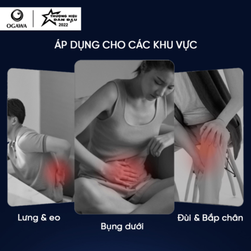 Khu vực massage: Có thể áp dụng cho nhiều vị trí như cổ vai gay, lưng & hông, bụng, đùi và bắp chân.