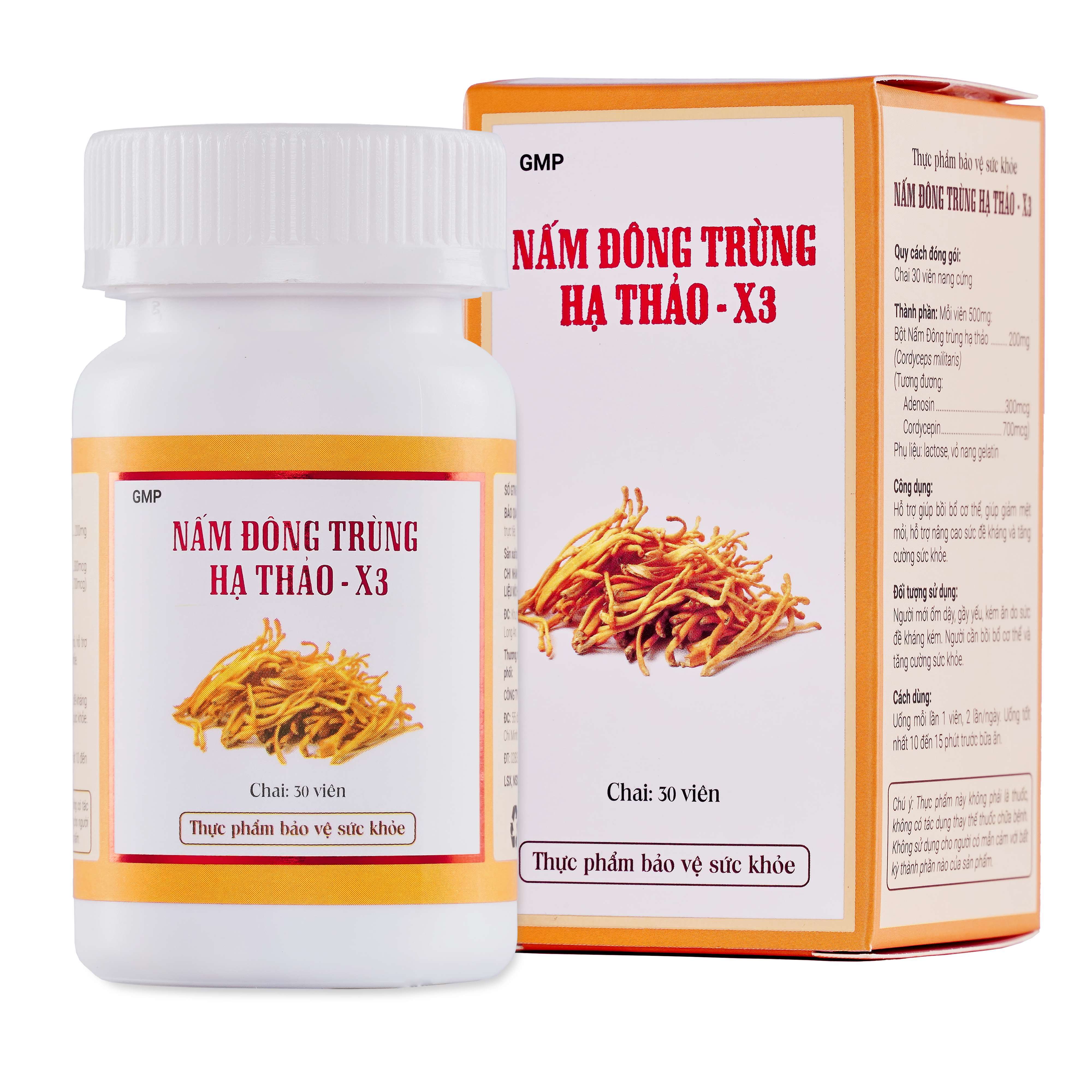1. Tên sản phẩm: Thực phẩm bảo vệ sức khỏe nấm đông trùng hạ thảo - x3 (kèm túi)