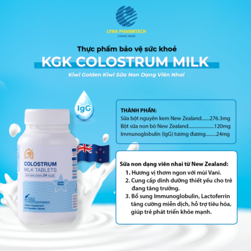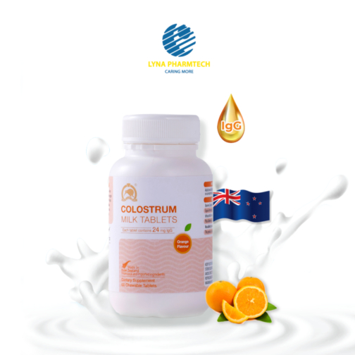 Thực phẩm bảo vệ sức khỏe KIWI GOLDEN KIWI Colostrum Milk Tablets 24IgG Orange Flavour (Hộp 60 viên)