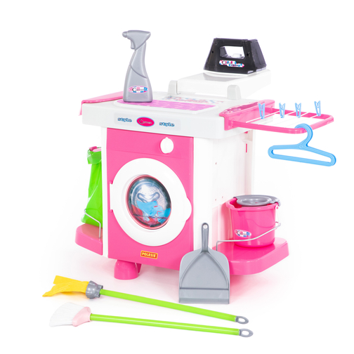Tự hóa thân thành người lớn và tự săn sóc cho bản thân chắc hẳn là điều mà các bé luôn tưởng tượng. Bây giờ những điều này sẽ trở nên thực tế hơn bao giờ hết với Bộ đồ chơi máy giặt cho bé Carmen của Polesie, với thiết kế đầy màu sắc cùng đầy đủ các vật dụng như máy giặt, bàn ủi, khu vực phơi đồ hoặc các vật dụng dọn dẹp như chổi, cây lau nhà, v.v. các bé sẽ tự do phát triển tối đa trí tưởng tượng của mình. Song song đó, ba mẹ có thể hướng dẫn các bé cách sử dụng các vật dụng xung quanh mình, dần dần các bé sẽ làm quen với việc phụ giúp ba mẹ trong công việc hằng ngày và xây dựng tính tự lập cho bản thân.