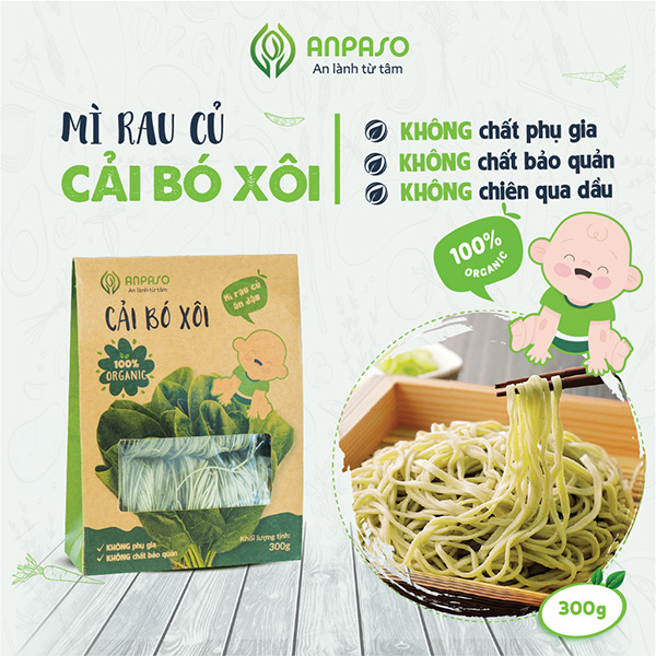 Tên sản phẩm: Mì Cải Bó Xôi Ăn Dặm Organic Anpaso 300g