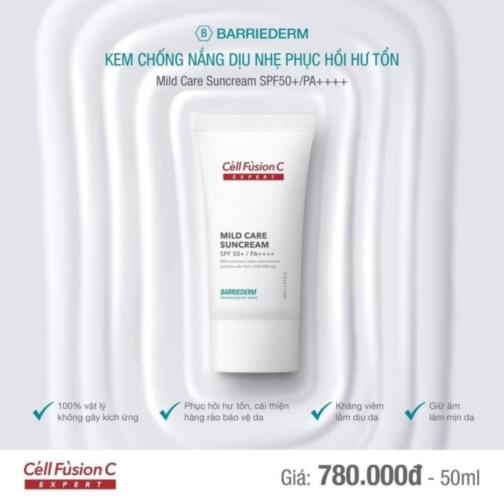 Tên sản phẩm: Kem chống nắng làm dịu da, tăng cường hàng rào bảo vệ da 50ml - Cell Fusion C Expert Mild Care Suncream SPF 50+/ PA++++