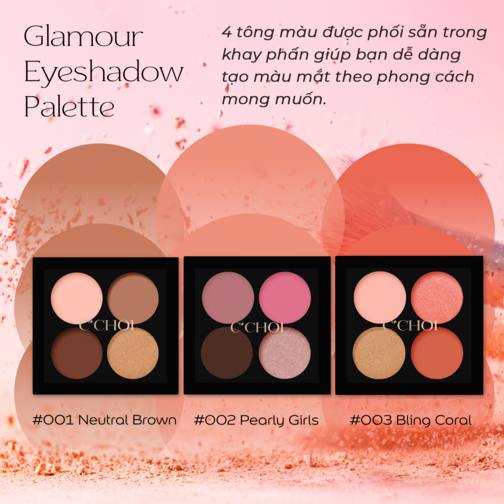 Khay phấn mắt có 4 ô bao gồm màu lì và màu nhũ được phối sẵn theo từng tông màu tiện dụng giúp bạn dễ dàng tạo màu mắt theo phong cách mong muốn.