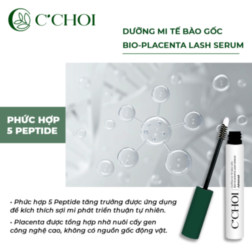 Với tiêu chí hàng đầu là AN TOÀN - HIỆU QUẢ và là thương hiệu quen thuộc với hàng triệu phụ nữ yêu thích làm đẹp thông minh, tiện lợi, Mỹ phẩm xanh C'Choi cho ra mắt siêu phẩm Dưỡng Mi Tế Bào Gốc với thành phần chính là BIO-Placenta, đây được xem như bước tiến đột phá của công nghệ sinh học Hàn Quốc, là sự tổng hợp từ: 5 loại Peptide tăng trưởng, cùng các Amino Acids và Vitamin. Dưỡng Mi Tế Bào Gốc của Mỹ phẩm xanh C’Choi tự hào là sản phẩm nuôi dưỡng và thúc đẩy tăng trưởng kích thước của sợi mi một cách HIỂU QUẢ và tuyệt đối an toàn, kể cả đối tượng phụ nữ có thai và trẻ em từ 1 tuổi.