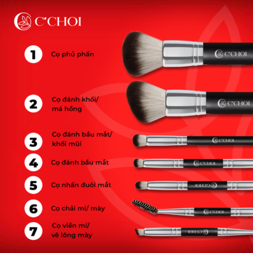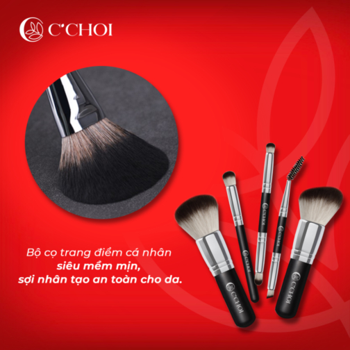 Bộ cọ trang điểm cá nhân C’CHOI có kích thước nhỏ gọn, tiện lợi sử dụng mỗi ngày và đem theo bên mình trong các chuyến du lịch. Cán gỗ sang trọng, chắc tay. Lông tơ mềm mịn dễ dàng tán phấn. Bao gồm 7 đầu cọ cơ bản, vừa đủ dùng cá nhân hàng ngày.