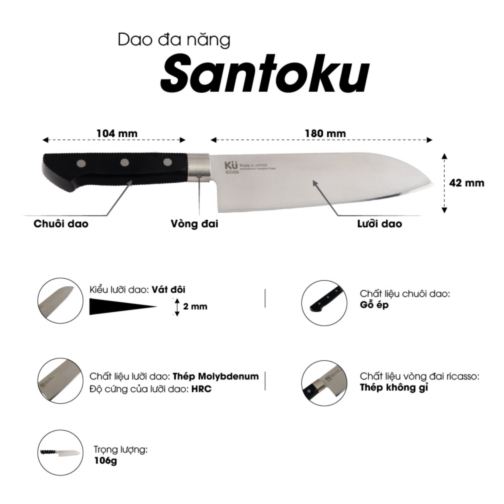 Tên sản phẩm: DAO ĐA NĂNG SANTOKU NHẬT BẢN KU JN165