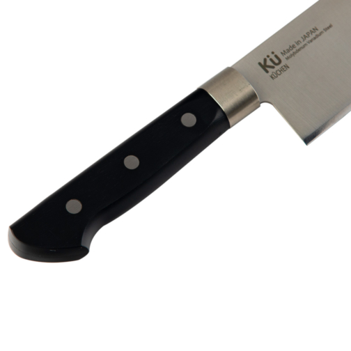 Dao Santoku KUCHEN có thiết kế đẹp, sang trọng. Phần lưỡi dao có khả năng duy trì độ sắc bén và sáng bóng sau thời gian dài sử dụng. Lưỡi dao làm bằng thép Molybdenum không gỉ, độ cứng lên đến 59HRC, nhập khẩu nguyên liệu và sản xuất theo công nghệ Nhật Bản, mang đến khả năng chống ăn mòn cũng như cho phép bạn cắt thái chính xác, sắc nét trên mọi loại thực phẩm.